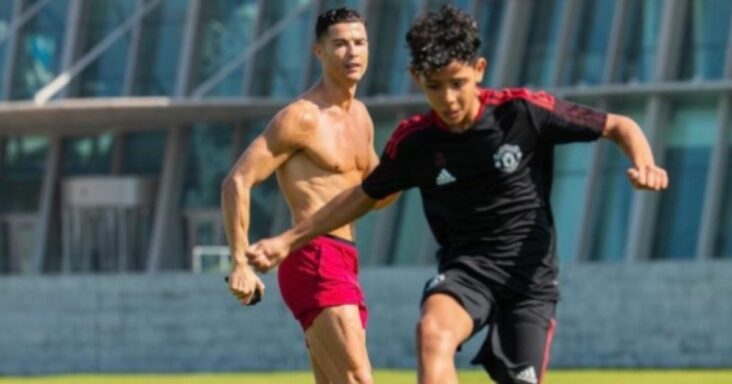 36 წლის პორტუგალიელმა შვილთან, კრიშტიანო-უმცროსთან ერთად ვარჯიშის ფოტოები გამოაქვეყნა, რომელიც „მანჩესტერის“ ფორმით ბურთაობს.