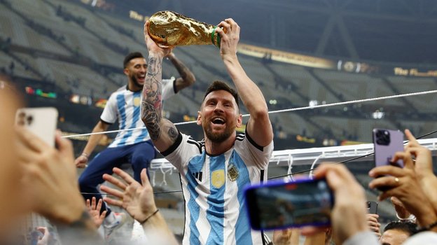 პირველ ფოტოზე მესის არ უჭირავს ნამდვილი თასი, არამედ ბუენოს აირესელი გულემატკივრების მიერ გაკეთებული ასლი. მათ ის ყატარში თილისმის სახით ჩაიტანეს და ნაკრების ფეხბურთელებს საპატიო წრის დარტყმისას მისცეს.