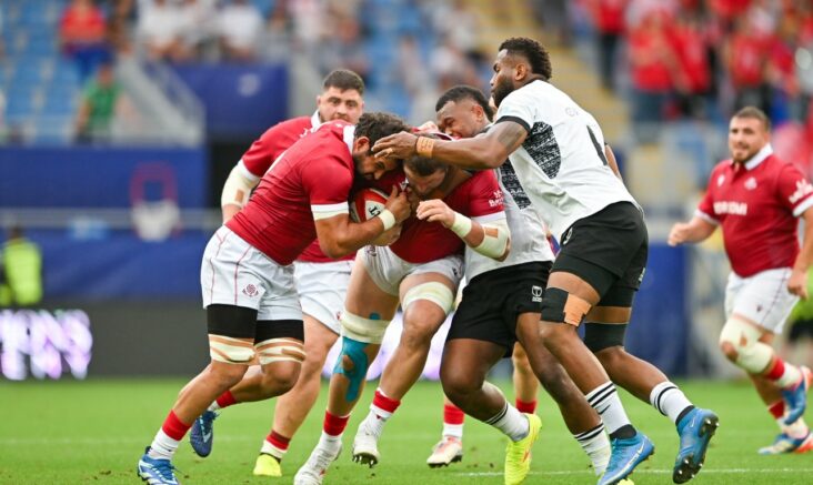 რიჩარდ კოკერილმა მეტოქეს გადახალისებული შემადგენლობა დაუპირისპირა და რამდენიმე გადაადგილებაც განახორციელა. ლუკა მატკავამ ფულბეკის პოზიციაზე ითამაშა, დებიუტი ჰქონდა და 303-ე ბორჯღალოსანი გახდა ‘სტად ფრანსეს’’ კვაჭი ლუკა პეტრიაშვილი, რომელიც შეცვლაზე შევიდა. 23-კაციან განაცხადში 7 ისეთი მოთამაშე იყო, რომელთა ანგარიშზე 10-ზე ნაკლები კეპია, თუმცა ფიჯისთან მეორე მოგების იმედი თამაშის დასრულებამდე არავის დაუკარგავს.