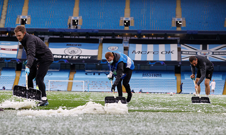 „ეტიჰადი“ რამდენიმე წუთით ადრე „სიტისა“ და პსჟ-ს მატჩის დაწყებამდე უჩვეულოდ გამოიყურებოდა ჩემპიონთა ლიგის ნახევარფინალისთვის. ფინალში გასასვლელად ოდესმე ყოფილა, რომ მსგავს ამინდში უბრძოლიათ?