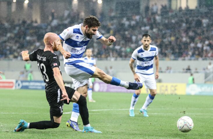 პირველ ნახევარში ერთადერთი ბურთი ეროვნული ნაკრების წევრმა ვლადიმერ მამუჩაშვილმა, ულამაზესი ჯარიმით გაიტანა. 53-ე ზე ისევ მამუჩაშვილი გამოირჩა, ამჯერად პენალტის ნიშნულიდან. 77-ე ზე 11-მეტრიანი ნიშნულიდან ჯოვინო ფლამარიონმა გაიტანა, ხოლო 88-ე წუთზე თორნიკე გაფრინდაშვილმა წერტილი დასვა.