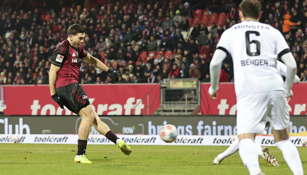 30.01.2026 — Fussball — Saison 2025 2026 — 2. Fussball – Bundesliga — 20. Spieltag: 1. FC Nürnberg FCN ( Club ) – SC Preußen Münster SCP — Foto: Sportfoto Zink / DaMa — xdaxmax — DFL regulations prohibit any use of photographs as image sequences and/or quasi-video – only for editorial use —