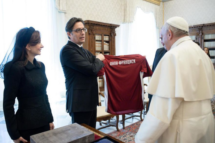 როგორც ფოტოშიც ჩანს, მაისური საჩუქრად რომის პაპსაც გადასცეს.