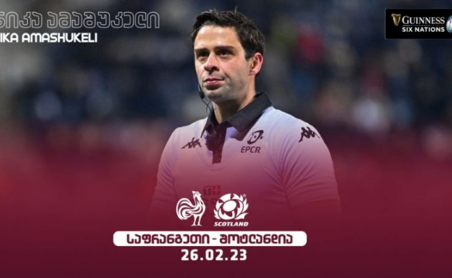 ნიკა ამაშუკელი 2023 წლის 26 თებერვალს საფრანგეთსა და შოტლანდიას შორის “ექვსი ერის” მესამე ტურის შეხვედრას განსჯის. 28 წლის ქართველ რეფერის ჩრდილოეთ ნახევარსფეროს უძველეს საერთაშორისო რაგბის ტურნირზე ზედიზედ მეორე წელია იწვევენ.