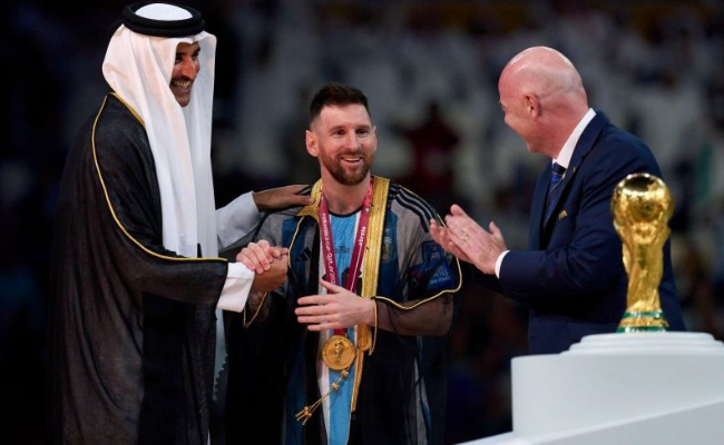 მატჩის შემდეგ ფიფას პრეზიდენტმა ჯანი ინფანტინომ და კატარის ემირმა ტამირ ბინ ჰამად ალ ტანიმ “ალბისელესტეს” კაპიტან ლიონელ მესის შავი მოსასხამი მოარგეს.