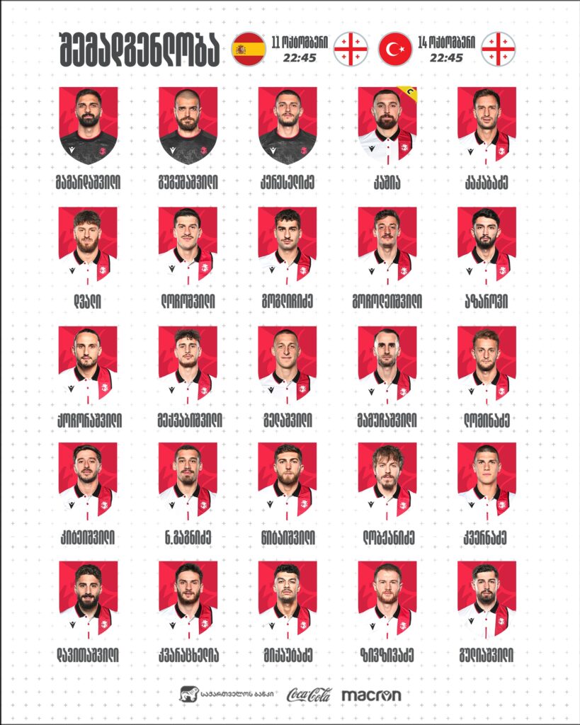 მოახლოებული მატჩებისთვის ნაკრების მთავარმა მწვრთნელმა, ვილი სანიოლმა 25 ფეხბურთელი გამოიძახა: