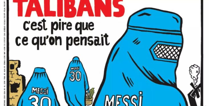 სატირულმა ყოველკვირეულმა ჟურნალმა Charlie Hebdo-მ 1517-ე ნომრის გარეკანი წარადგინა. ის ავღანეთში პოლიტიკურ კრიზისს ეძღვნება. პირველ გვერდზე ლურჯ ფარანჯიანი სამი ადამიანია გამოსახული „მესის“ გვარით და ზურგზე №30-ით. ორ მათგანს იარაღიანი ჩემოდანი უჭირავს.