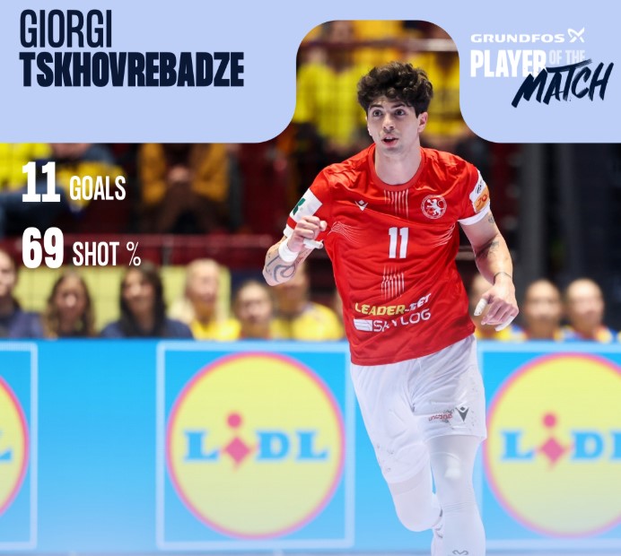 მსოფლიოსა ოთხგზისა და ევროპის ხუთგზის ჩემპიონთან თამაში საქართველომ კარგად დაიწყო, ერთ მომენტში ორი ბურთითაც იგებდა, მაგრამ დაახლოებით 20-ე წუთიდან, როცა ანგარიში გათანაბრდა (11:11), უპირატესობა მასპინძლებმა აიღეს, სამი ბურთით გავიდნენ წინ, პირველი ტაიმი ხუთბურთიანი სხვაობით მოიგეს და შესვენების შემდეგაც ასევე გააგრძელეს.