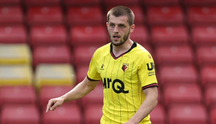 WATFORD, ENGLAND - AUGUST 03: Giorgi Chakvetadze of Watford runs with the ball during the pre-season friendly match between Watford and Brentford at Vicarage Road on August 03, 2024 in Watford, England. (Photo by David Rogers/Getty Images)